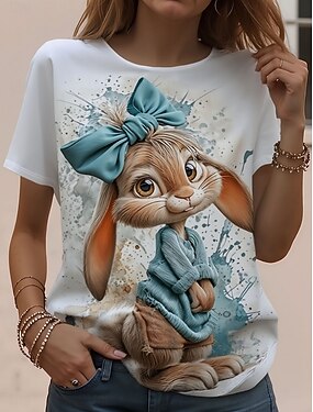 Mulheres Camiseta Imprimir Gráfico Animal Vintage à moda Clássico Manga Curta Gola Redonda Tops regulares Diário Final de semana Azul Branco Amarelo Rosa Verão Primavera Outono Inverno