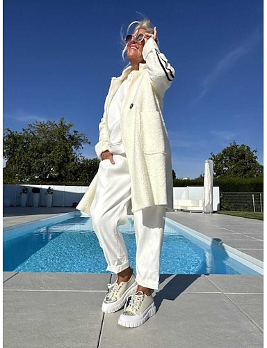 Mulheres Casaco Manter Quente Botões Casual Roupa Diária Lapela Normal Manga Longa agasalhos Branco Vermelho Laranja Outono Inverno