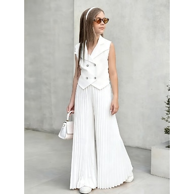 2 Peças Infantil Para Meninas Côr Sólida Franzido Camisa & Calças Conjunto Sem Manga Moda Casual 4 anos + Verão Rosa Profundo Branco Rosa