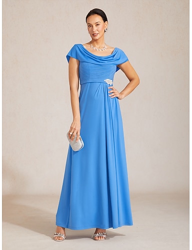 Mulheres Vestido Longo Vestido A Line Elegante Festa de Noite Coquetel Pregueado Fenda Normal Côr Sólida Manga Curta Gola Boba Wedgwood