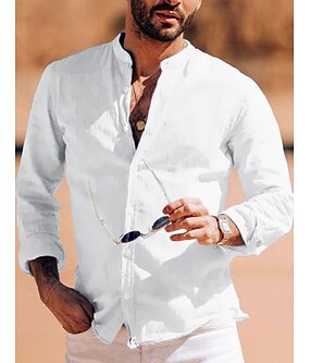 Homens Camisa de algodão e linho Camisa de colarinho chinês Camisa gola mandarim Tecido Férias Praia Branco Azul Manga Longa colarinho do vovô Primavera Verão Roupa