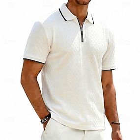 Homens Polo com zíper Textura Casual Feriado Lapela Quarter Zip Manga Curta Moda Básico Tecido Quarter Zip Verão Primavera Fino Azul Preto Branco cáqui Cinzento Polo com zíper