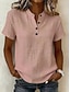 Mulheres Blusa Topo de ilhó Tops de renda Vazado Botões Tecido Diário à moda Básico Manga Curta Colarinho de Camisa Tops regulares Diário Trabalho Feriado Branco Rosa cor de Rosa Primavera Outono