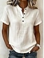 Mulheres Camiseta de algodão e linho camiseta de tricô Côr Sólida Vintage Moda Casual Manga Curta Gola Redonda Tops regulares Diário Esportes Para Noite Branco Verão Primavera