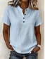 Mulheres Camiseta Camisa Henley T-shirt Botões Moda Casual Estilo Praia Sem Manga Decote V Tops regulares Casual Azul Preto Branco Rosa Verão