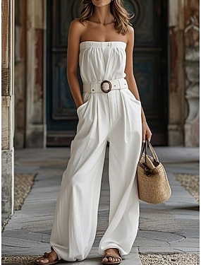 Mulheres Normal Macacão Férias Côr Sólida Sem Manga Perna larga Sem Alças Bolsos Rua Feriado Ajuste Largo Azul Preto Branco Verão