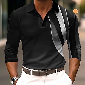 Homens Pontos Geométrico Pólo Manga Longa Camisas polo Camisas de colarinho Casual Ao ar livre Roupa Esportiva Impressão 3D Botões Primavera Outono Inverno Preto Branco Vermelho