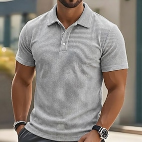 Homens Textura Polo Malha Waffle Casual O negócio Clássico Manga Curta Moda Moderno Côr Sólida Textura Botões Primavera Verão Verão Primavera Normal Azul Preto Branco Azul Marinha Verde Textura