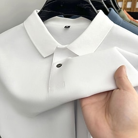 Homens Pólo polo empresarial Casual O negócio Lapela Manga Curta Moda Moderno Tecido Botões Puro Verão Primavera Normal Preto Branco Vermelho Castanho Claro Pólo