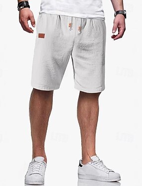 Homens Calção Shorts de linho Shorts de verão Shorts de praia Bolsos Perna Cordão Perna reta Tecido Conforto Respirável Comprimento do joelho Casual Diário Feriado Férias Moda Branco Azul Marinha