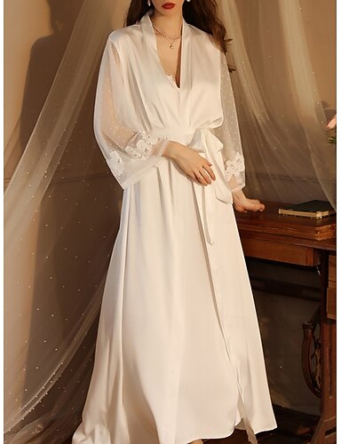 Mulheres manto Casual Macia Seda Cor imaculada Patchwork Com Transparência Diário Casa De Cama Manga Longa Decote V Preto Branco Vinho Verão Ajuste Largo