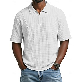 Homens Camisas Polo Waffle Polo com zíper Casual Feriado Lapela Quarter Zip Manga Curta Moda Básico Tecido Quarter Zip Verão Primavera Normal Preto Branco Azul Marinha Roxo Verde Caqui Camisas Polo