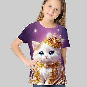 Para Meninas 3D Gato Camiseta Camisas Rosa Manga Curta Impressão 3D Verão Ativo Moda Estilo bonito Poliéster Infantil 3-12 anos Gola Redonda Ao ar livre Casual Diário Normal