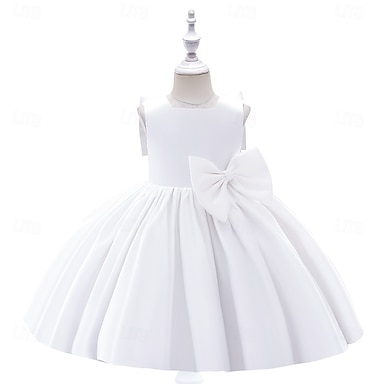 Infantil Para Meninas Vestido de festa Côr Sólida Sem Manga Espetáculo Aniversário Nó de gravata Lindo Doce Algodão Longo Vestido de festa Vestido Swing Vestido A Line Verão 4 anos + Branco Champanhe