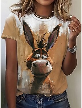 Mulheres Camiseta Imprimir Gráfico Animal Vintage à moda Clássico Manga Curta Gola Redonda Decote Redondo Tops regulares Diário Final de semana Branco Rosa Cáqui Cinza Claro Verão Primavera Outono