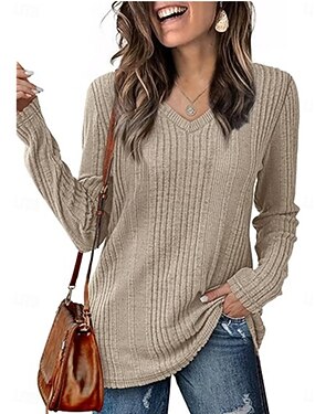 Mulheres Blusa Côr Sólida à moda Casual Manga Longa Decote V Tops regulares Diário Preto Vinho Cáqui Primavera Outono Inverno
