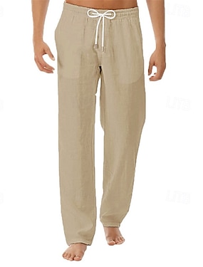 Homens Calças de linho Calças Calça verão Calças largas Calças de praia Com Cordão Cintura elástica Perna reta Tecido Conforto Respirável Comprimento total Diário Feriado Para Noite Moda Estilo