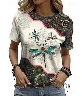 Mulheres Camiseta Imprimir Gráfico Animal Vintage à moda Clássico Manga Curta Gola Redonda Tops regulares Diário Final de semana Azul Branco Roxo Verde Cáqui Verão Primavera