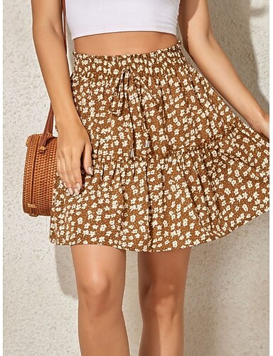 Mulheres Saia de férias Moda Casual Longo Cintura Alta Saias Floral Frufru Imprimir Com Stretch Diário Rua Preto Amarelo Rosa Azul Marinha Verão Poliéster