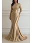 Linha A Tubinho Vestidos de noite Elegante Traje formal Formal Casamento Cauda Escova Manga Longa Ombro a Ombro Cetim com Pregas Franzido 2025