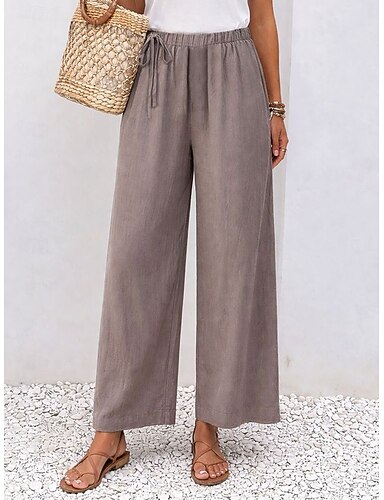 Mulheres Linho de algodão sintético Perna larga chinês Calça verão Férias Roupa de rua Básico Comprimento total Cintura Média Tecido Com Cordão Bolsos Confortável Conforto Sem Elasticidade Diário Ao