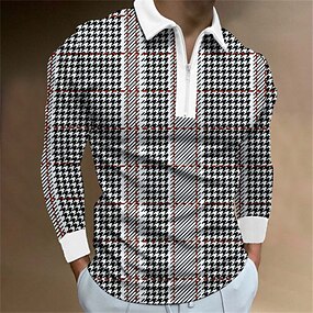 Homens Listrado Camisas Polo com zíper Camisa de golfe Manga Longa Camisas polo Camisas de colarinho Business casual Roupa de Trabalho Traje formal Roupas para festivais Impressão 3D Polo com fecho