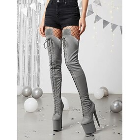Botas femininas plataforma acima do joelho com cadarço - botas de salto alto para pole dance, cano alto, para vida noturna e festas