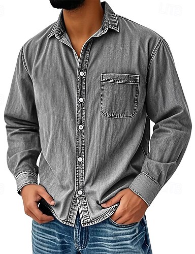 Homens Camisa Social Camisa casual camisa vintage camisa de botão Preto Verde Claro Vinho Azul Marinha Azul Manga Longa Tecido Lapela Para Noite Streetwear Bolsos Roupa Moda Retro Vintage