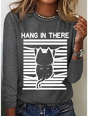 Camisa feminina T camisa de manga longa gráfica animal gato vintage fashion estilosa manga longa golas arredondadas tops regulares para o dia a dia estampa cinza primavera outono pré-outono