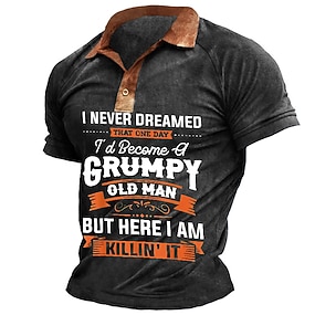 Homens Velhote Camisas Polo Manga Curta Camisas polo Lapela Vintage Casual Streetwear Roupa Diária Impressão 3D Malha Respirável Primavera Verão Preto Marron Cinzento