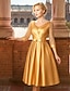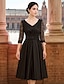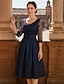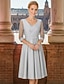 Linha A Longuette Vestido de festa Vestido Coquetel Manga 3/4 Gola Redonda Elegante Vintage Festa Poliéster Vestido Para Mãe dos Noivos com Renda Pregas