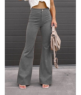 Mulheres Parte inferior do sino Calças Férias Moda Roupa de rua Comprimento total Cintura Alta Tecido Bolsos Macio Confortável Micro-Elástica Férias Rua Feriado Vinho Preto Azul Marinho Escuro Azul