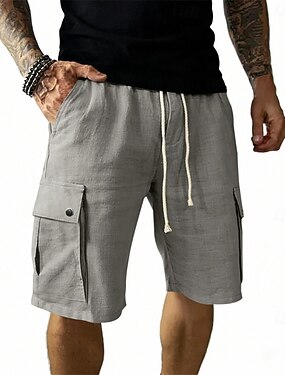 Homens Bermuda Cargo Calção Shorts de linho Shorts de verão Shorts de praia Com Cordão Cintura elástica Bolso multi Tecido Conforto Respirável Comprimento do joelho Ao ar livre Diário Para Noite Moda