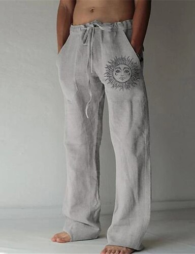Homens Calças de linho Calças Calça verão Calças de praia Imprimir Perna reta Gráfico Sol Macio Exterior Comprimento total Casa Casual Diário Moda Roupa de rua Branco Azul Micro-Elástica