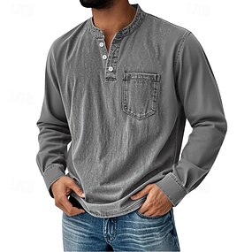 Homens Vintage Camisa Henley Camiseta Manga Longa Retro Vintage Casual Casual Primavera Outono Todas as Estações Preto Rosa Roxo Azul Marron Henley Camiseta Henley