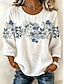 Mulheres Blusa Imprimir Floral Gráfico Boêmia Vintage Tropical Manga 3/4 Gola Redonda Tops regulares Casual Diário Roupas de férias Branco Verão Primavera