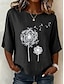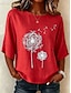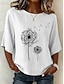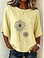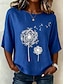 Mulheres Camiseta Linho de algodão sintético Imprimir Gráfico dandelion Moda à moda Clássico Manga Curta Decote V Tops regulares Diário Para Noite Final de semana Branco Amarelo Tinta Azul Cinzento