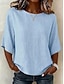 Mulheres Camiseta Camiseta de algodão e linho Linho de algodão sintético T-shirt Patchwork Tecido Clássico Casual Manga Curta Decote V Tops regulares Diário Para Noite Final de semana Azul Céu