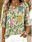 Mulheres Blusa Imprimir Floral Gráfico Boêmia Vintage Tropical Manga 3/4 Gola Redonda Tops longos Casual Diário Roupas de férias Amarelo Verão Primavera