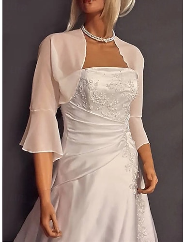 Xales Wrap de Mulher Bolero Coberturas de Noiva Cor Pura Sexy Proteção Solar Manga 3/4 Comprimento Chiffon Vestidos de Casamento com Cor Pura Para Casamento Primavera Verão vestido para impressionar