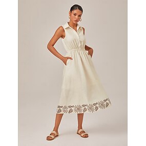 Mulheres Camisetão Vestido midi Damasco Sem Manga Gráfico Botões Imprimir Verão Colarinho de Camisa Férias XS S M