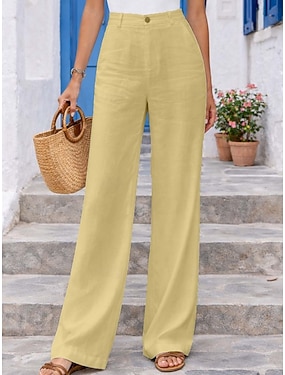 Mulheres Perna larga Calças de linho calças justas Calças largas Moda Comprimento total Tecido Bolsos laterais Folgado Conforto Sem Elasticidade Casual / Diário Preto Amarelo Verde Damasco Normal