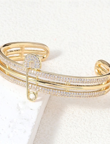 Zircão Geométrico Séries Totem Estilo bonito à moda Simples Na moda cromada Pulseira de jóias Prata / Dourado Para Casamento Festa Noivado Baile de Formatura