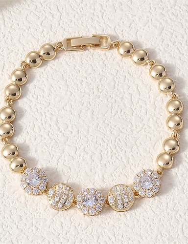 Zircônia Cubica Clássico Mini Elegante Personalizada Na moda cromada Pulseira de jóias Prata / Dourado Para Casamento Festa Noivado Baile de Formatura