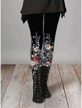 Mulheres Calças Leggings Leggings aconchegantes Férias Vintage Roupa de rua Comprimento total Natural Floral Gráfico Flor Cintura elástica Imprimir Confortável Exterior Elasticidade Alta Ao ar livre
