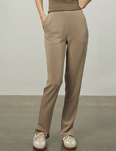 Mulheres Calças de ioga Calças de perna reta Com bolsos Academia Esportivo Corrida Calças Côr Sólida Preto Branco Verde Elastano Esportes Roupas Esportivas Delgado