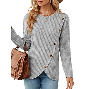 Mulheres Blusa Côr Sólida à moda Casual Manga Longa Gola Redonda Tops regulares Diário Botões Preto Verde Tropa Vermelho Azul Cinzento Primavera Outono Inverno