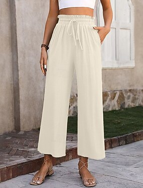 Mulheres Linho de algodão sintético Calça verão Calças largas Calças Cropped Férias Roupa de rua Básico Comprimento total Cintura Média Côr Sólida Com Cordão Bolsos Sem Elasticidade Diário Ao ar