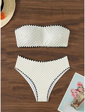 Mulheres Roupa de Banho Biquíni 2 partes Cavado roupa de banho Delgado Frente Única Férias Roupa de Praia Côr Sólida Sem Alças Sem Manga Fatos de banho