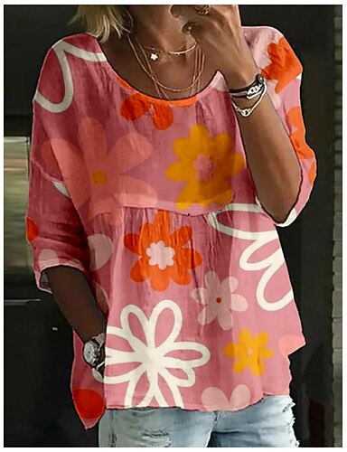 Mulheres Blusa Imprimir Floral à moda Manga 3/4 Gola Redonda Tops regulares Diário Feriado Rosa Verde Bege Verão